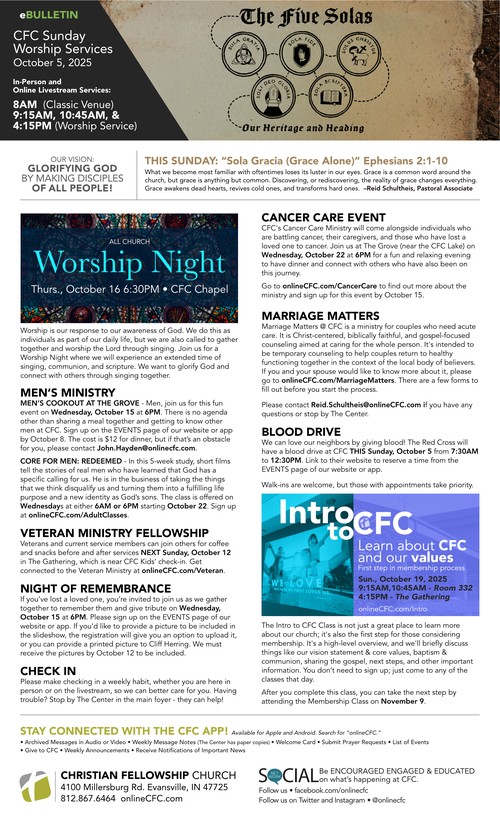 Stay up to date with what's happening at CFC by reading the eBulletin each week.