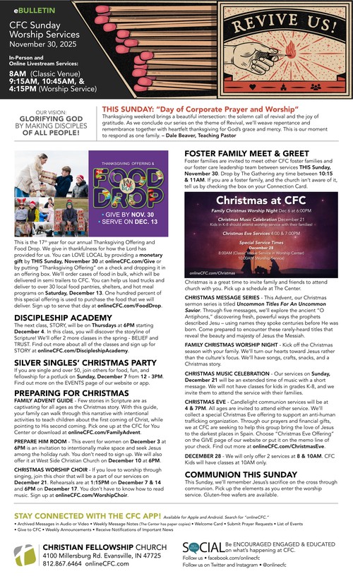 Stay up to date with what's happening at CFC by reading the eBulletin each week.