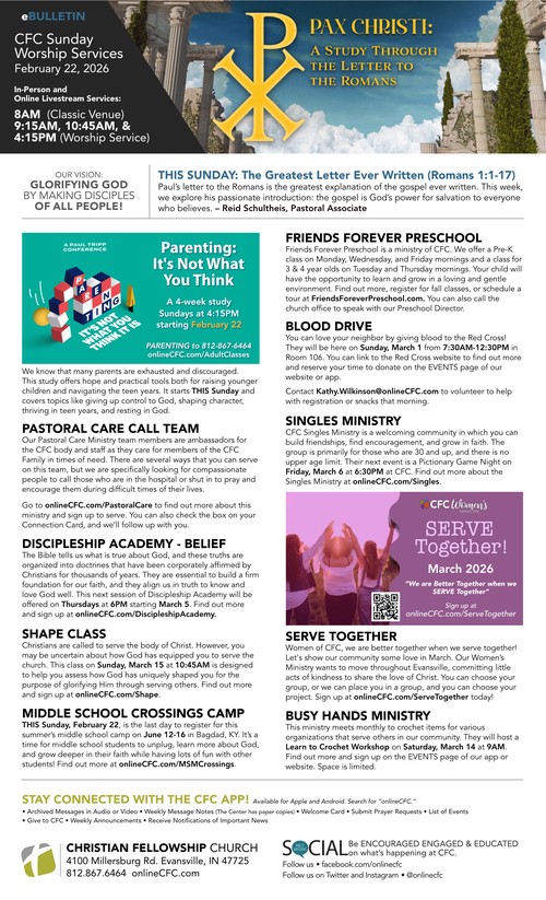 Stay up to date with what's happening at CFC by reading the eBulletin each week.