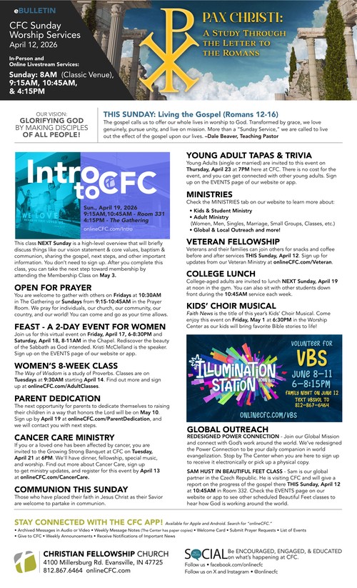 Stay up to date with what's happening at CFC by reading the eBulletin each week.