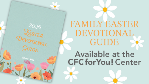 Pick up an Easter Devotional Guide at the CFC for You! Center starting March 5 (or download it below) to help your family focus on Christ and prepare to celebrate Easter.